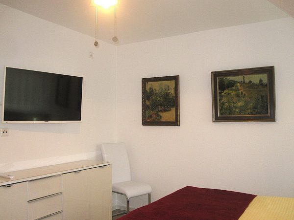 Das Schlafzimmer bietet ein luxuriöses Boxspringbett mit elektrisch verstellbarer Liegefläche Flachbild TV und ausreichend Stauraum.